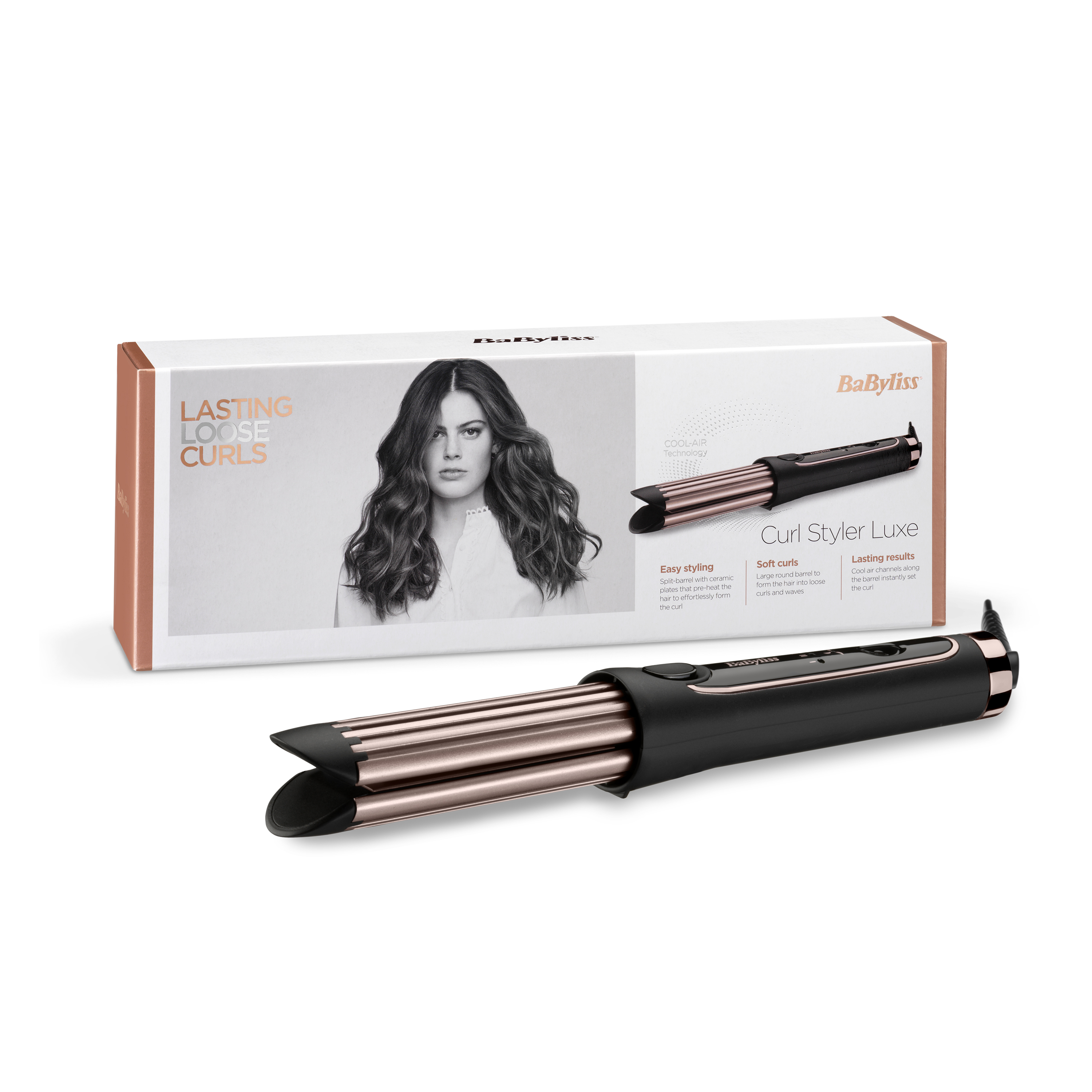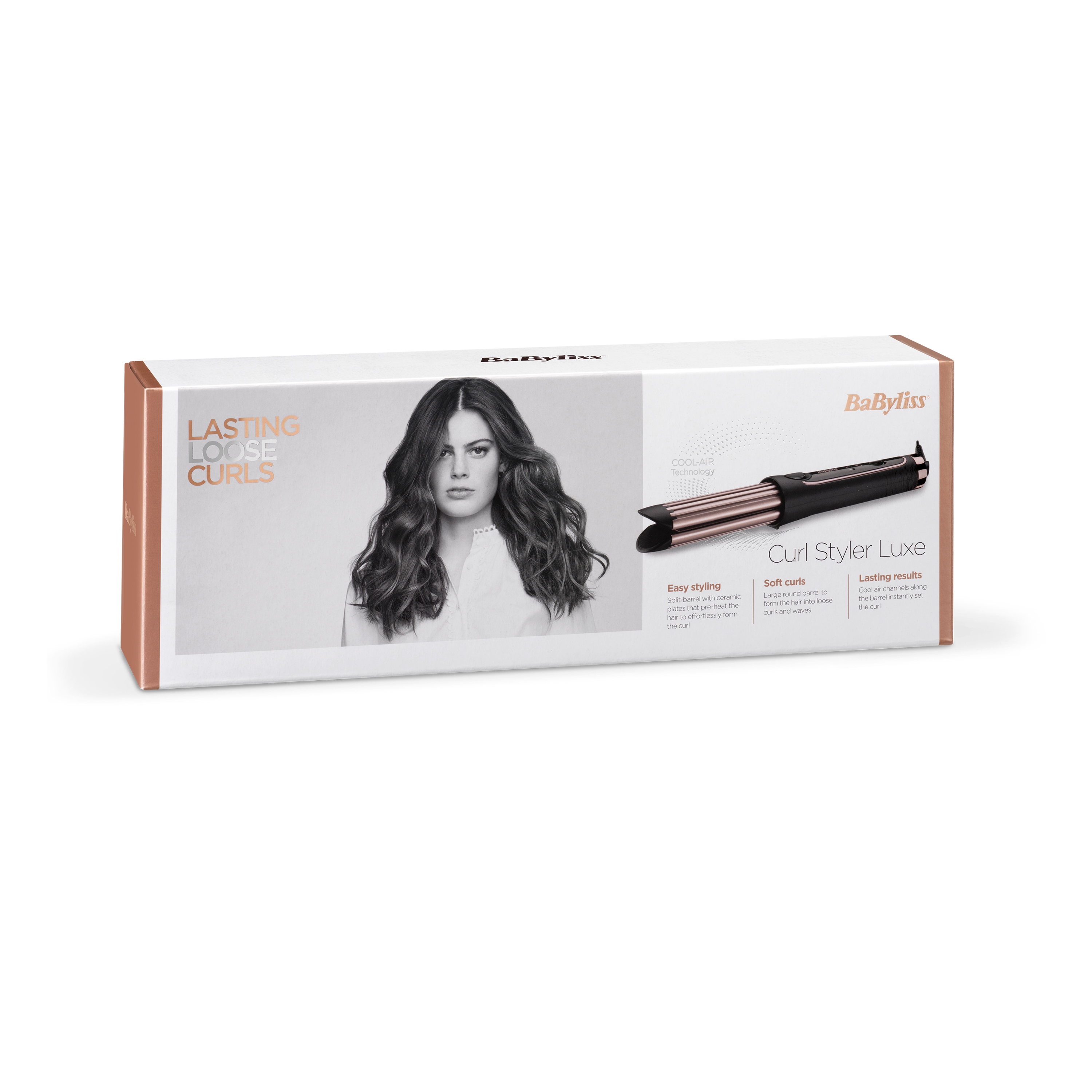 Инновационная разработка. Идеальное сочетание керамических пластин и холодного воздуха позволит создать идеальную укладку, которая продержится целый день. Керамические пластины разглаживают волосы, а благодаря внешнему обдуву пластин холодным воздухом локон фиксируется, становясь гладким и блестящим. Просто поместите волосы между керамическими пластинами и поверните стайлер под угол 180° градусов и проведите по волосам.