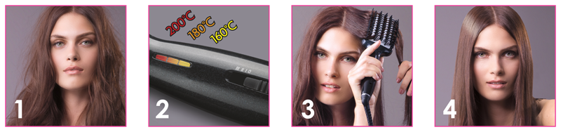 Керамическая система нагрева и нагревающиеся зубчики равномерно распределяют тепло, не перегревая волосы, а 3 температурных режима (160°C,180°C, 200°C) позволяют выбрать наиболее подходящий для вашего типа волос. Терморасческа оснащена LED-индикаторами для точной установки температуры.